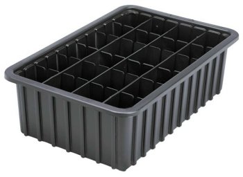 Ribbed design gives added strength. Optional accessories include dividers, clear plastic